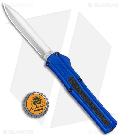 The AKC F-20 is a lightweight, mid-size OTF automatic knife from the Italian company AKC. These knives are made from aluminum with a sandpaper inlay for grip. The dual-action thumb slide has jimping for texture. The firing action is satisfying and powerful! This is a lot of knife for the price!