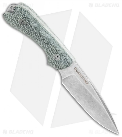 This Guardian 3 model has a stonewash finished blade with a false edge grind and 3D black Micarta handle scales.