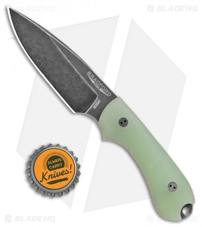 This Blade HQ Exclusive Guardian 3 model has a black stonewash finished blade with a false edge grind and 3D jade G10 handle scales.