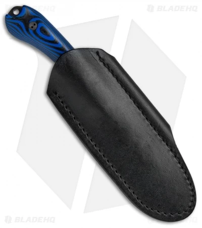 This knife has a DLC black finished blade with a false edge, and 3D black/blue G-10 scales.