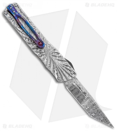 This custom Small Twist Tighe OTF offers a stunning Brian Tighe design with a 3D machined damascus steel handle. The damasteel blade comes in a tanto style with a plain edge. Item includes a Timascus pocket clip and a carbon fiber thumb slide. Add an instant upgrade to your knife collection with the Brian Tighe Custom OTF.