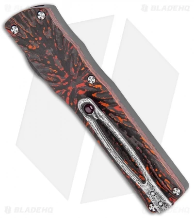 This custom Small Twist Tighe OTF offers a stunning Brian Tighe design with a 3D machined aluminum and red Fat Carbon Fiber handle. The damasteel blade comes in a tanto style with a plain edge. Item includes a damascus pocket clip and a carbon fiber thumb slide. Add an instant upgrade to your knife collection with the Brian Tighe Custom OTF.