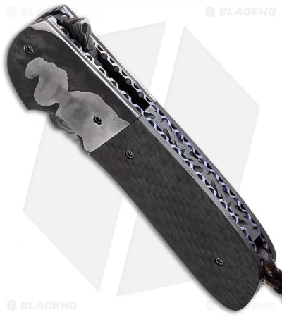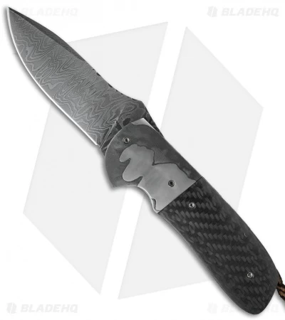This Viper Flipper #3 is a fine crafted knife from Burr Oak Knives. It features a 160 layer random Damascus steel blade with a file worked spine and convex grinds. Carbon fiber scales and 5 layer random Damascus bolsters are fastened to the titanium liner lock frame. The liners and steel backspacer also display fine decorative file work. The titanium pocket clip and liners are violet anodized. This knife comes with a signed certificate of authenticity, dated 4/2/15.
