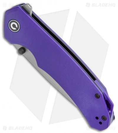 - Purple G-10 handle with comfortable finger grooves for a strong grip.
