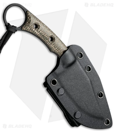 - Black Kydex sheath and a black tied paracord lanyard.