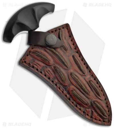 The Bush Dagger from Down Under Knives is the ultimate backup knife. It features a uniquely tapered blade design and contoured solid ebony handle with generous finger space for control. The Bush Dagger includes a heavy leather belt scabbard, designed to be worn on the small of the back. Simply disengage the retaining strap in the same fluid motion you use to grab the handle and the knife is in your hand.