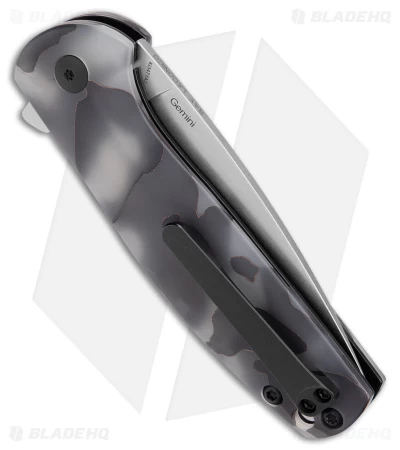 This Gemini flipper is a Ray Laconico designed folding knife based on his custom Jasmine folder. The build on this production model is superb, offering great fit and excellent action. The Gemini has a full-flat ground CPM S35VN steel blade with a fine stonewash finish. It’s set on a ball-bearing pivot, which offers phenomenal action. The handle scales are over a skeletonized stainless steel liner and lock tab. The tip-up carry clip accommodates EDC duty.