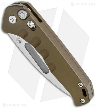 The new blade has been upgraded from CPM-S35VN to CPM-20CV steel. This model has a brown gold aluminum handle with a tumble finished blade. These are thick and burly knives, much like many other Medford knife, but this one is an automatic! It’s tough enough to accompany a soldier to the sand box, but it’s small enough to be a convenient EDC knife.