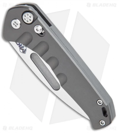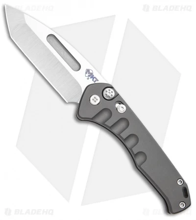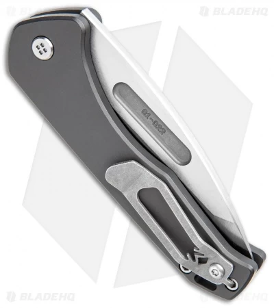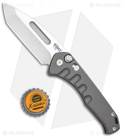 This model has a gray aluminum handle and a tumbled blade.
