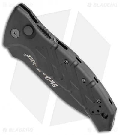 The XM Strike Fighter’s handle is made from milled, textured, and hard-coat anodized 6061-T6 aluminum with a pocket clip that’s three-way reversible for both tip-up and tip-down carry options. Its tanto point gives the knife extra strength and piercing power, and its partially serrated edge easily chews through fibrous materials, and will keep cutting long after the plain edge goes dull. Here is an automatic knife that is reliable, highly-functional, and ready to get to work.