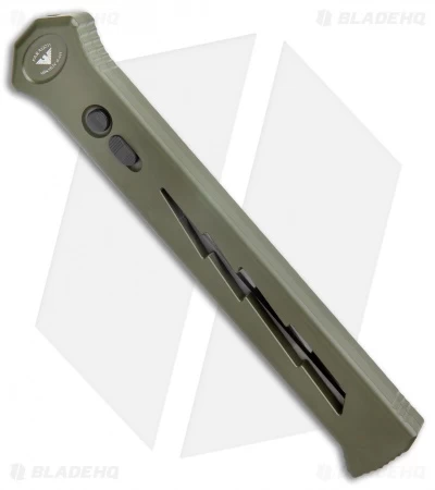 The Paragon Ashville Steel Estilleto knife is part of the ATKO family. It is the next generation and packs a bigger, badder punch. It has a single action, out-the-front blade release, and sliding lock for safe carry. Simply unlock the safety, push the button, and the blade will fire out the front of the handle. To put it back in, push the button to release the blade and use the side slider to put it back in the handle.