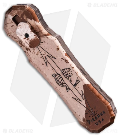 The Piranha Excalibur is a double action out-the-front automatic knife. The action on the Excalibur is solid and reliable. This OTF uses the power of a Piranha in its satisfying and snappy bite. Its handle has textured ridges to add to its uniqueness. This could be your next favorite EDC. With its creative handle style, you are sure to impress anyone who sees it.