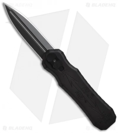 The Piranha Excalibur is a double action out-the-front automatic knife. The action on the Excalibur is solid and reliable. The handle is anodized 6061-T6 aluminum with a sliding firing button on front and a titanium tip-down carry pocket clip on back. The double-edge blade is 154-CM stainless steel.