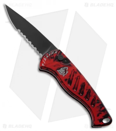 The Piranha Fingerling is a functional and stylish automatic knife. The action is fast and lockup is solid, so hang on tight! The knife is very thin, which makes it quite comfortable to carry with the tip-up titanium pocket clip.