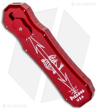 The Piranha Excalibur is a double action out-the-front automatic knife. The action on the Excalibur is solid and reliable. This OTF uses the power of a Piranha in its satisfying and snappy bite. Its handle has textured ridges to add to its uniqueness. This could be your next favorite EDC. With its creative handle style, you are sure to impress anyone who sees it.