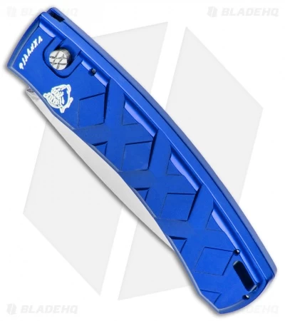 - Dark blue anodized handle with X’s on it.
