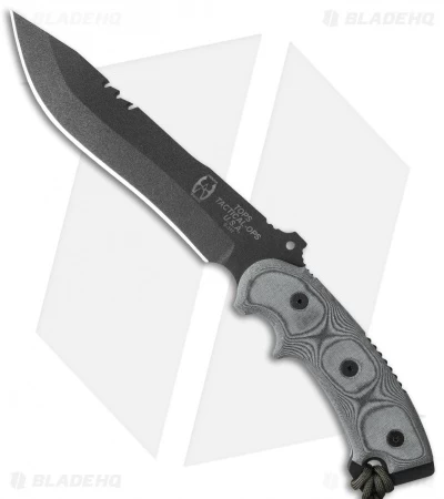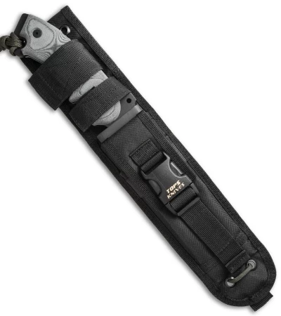 Ron Hood has given you a “field functional tool” that is efficient and effective in all terrains for military and civilian use alike. Even with its substantial size (13.25″ overall), it is extremely well balanced very comfortable in your hand. The black micarta scales are durable, and the lanyard hole comes with a length of paracord. The knife comes with a black nylon sheath that also includes a length of paracord and an emergency whistle.