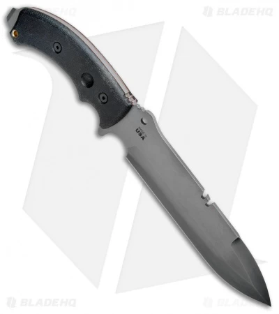 This Tahoma model is outfitted with a black canvas micarta handle and a spear point blade with a Black River Wash finish.