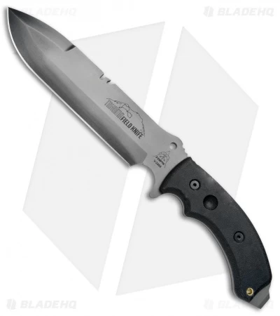 The TOPS Tahoma Field Knife was designed to provide anything the outdoor professional could need in a knife. The weight to size ratio was carefully monitored to provide for comfortable all-day carry and use. It has a spear point blade with a single edge and a spine notch for a variety of outdoor tasks. The curved handle was designed with ergonomics in mind, with dual spindle sockets and a pry bar at the pommel. Item includes a heavy duty nylon sheath for comfortable carry.